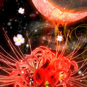 満月水紋彼岸花 壱彼岸花 和風 幻想壁紙